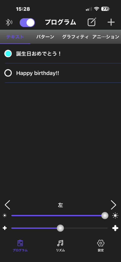 画面下段のタブ”プログラム”をタップすると、本画面になります。
