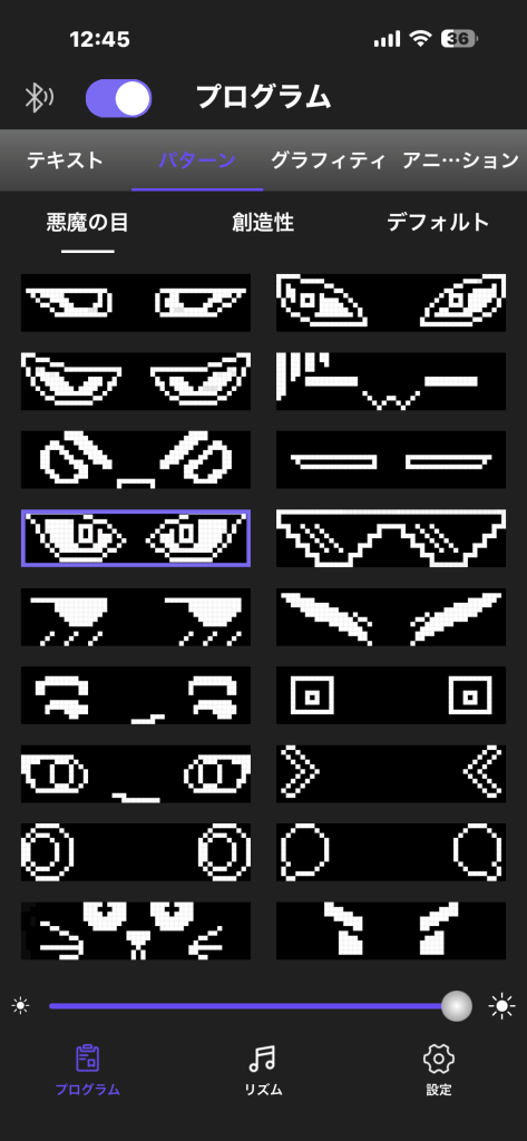 タブ ”悪魔の目”、”創造性”、”デフォルト”をそれぞれご確認ください。