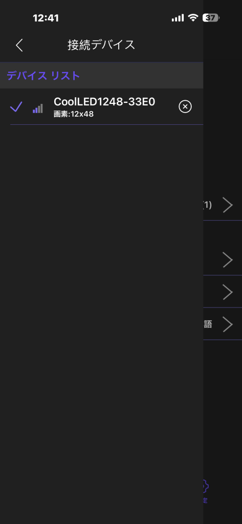 (5) CoolLED1248アプリをタップし起動して、接続されているご確認ください。