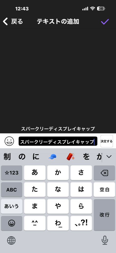 2.下段をタップして、テキストを入力後、決定 > 右上の✔ をタップします。